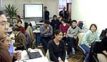 ※初日の朝には初対面でコチコチだった訓練生でしたが、グループワークを通して お互いを知り合うことができ、間もなく笑い声のあるなごやかな雰囲気になりました。そして、今では(右の写真)のびのびと活発に意見交換のできる意欲的な教室となっています。